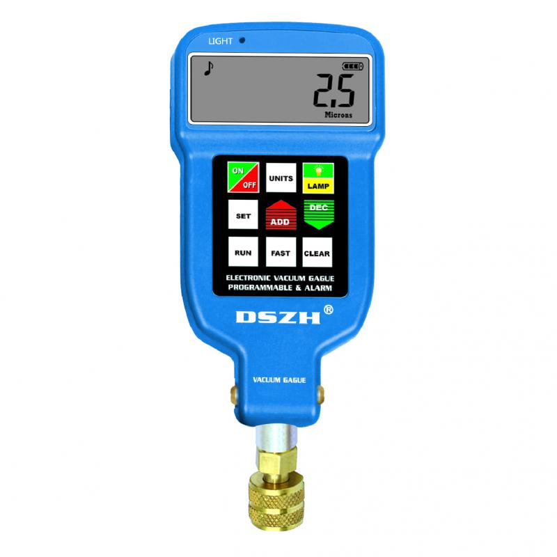 Электронный вакуумметр  DSZH WK-VG88 для вакуумирования холодильных систем и тепловых насосов. Прибор WK-VG88 измеряет мельчайшие значения абсолютного давления и предоставляет высокоточные сведения о степени осушки системы. Позволяет Вам сделать выводы о надёжности работы системы и отсутствии нежелательной влажности. Шесть едениц измерения :Pa,mBar,mmHg,Torr,mTorr,Microns. !Внимание! рекомендуется довести давление до 650 Pa(6.5мБар), упоминание об этом числе можно найдти в умных мануалых, именно при таком давлении температура кипения воды болтается где-то околонулевой зоны.