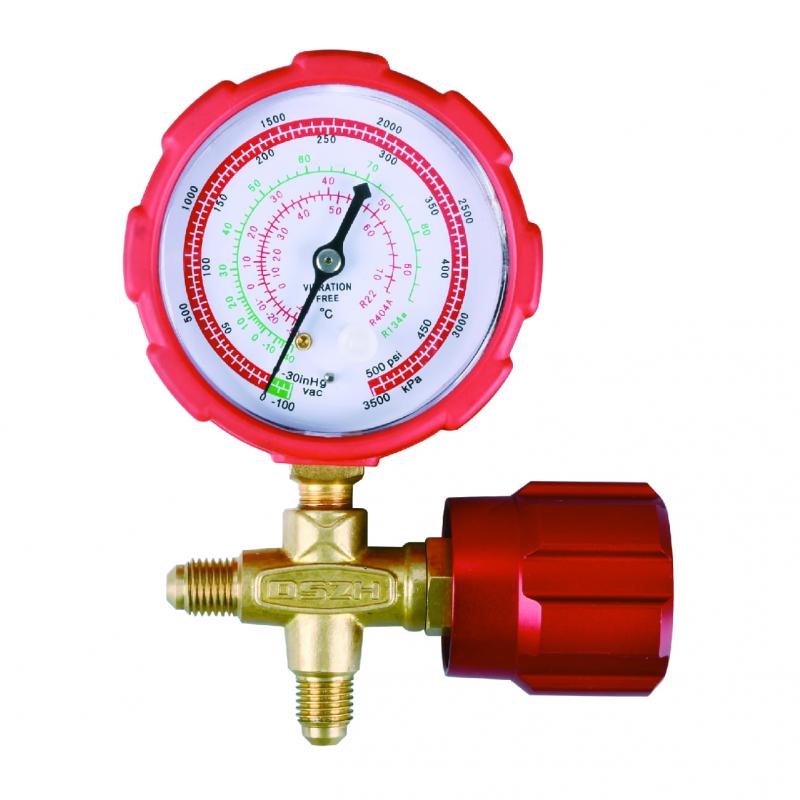 "Манометрический  одновентильный коллектор DSZH WK-466H это инструмент для определения давления в холодильном контуре. Манометры бывают анлоговые-стрелочный и цифровый. В компании РМТ можно выбрать манометры для любого назначения. Манометры помогают сервис инженеру определить: ваккум, температуру кипения фреона, давления разных фреонах а так же опресовку азотом. Манометры бывают двух и одновентильные, вентиль прекрывает напраление фреона, смотровое стекло показывает состояние фреона. В комплете идут шланги Желтый-сервисный(к балону фреона, азота, вакумника). Красный-высокое давление , Синий-низкое давление. Новая серия манометрических коллекторов DSZH серии WK отличается высокой надежностью, качеством используемых материалов. Корпус манометров выполнен из алюминиевого сплава и покрыт резиной для защиты от повреждений. Металлические вставки в вентилях позволяет увеличить срок их службы. Манометрический коллектор WK-466H предназначен для работы с фреонами R22, R134A, R410A, R407C
