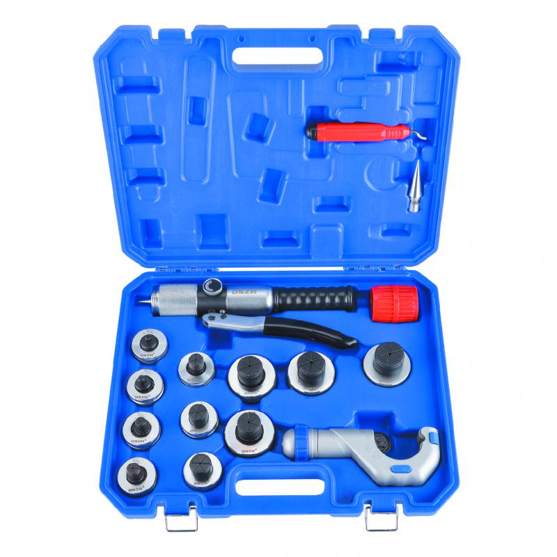 Труборасширитель DSZH CT-300AL служит для безмуфтового соеденения, алюминиевых, латунных и титановых труб. Труборасширитель гидравлический CT-300AL легкий, удобный, компактный, расширяет размеры труб 3/8",1/2",5/8",3/4",7/8",1",11/8",11/4",1 3/8",1 1/2",1 5/8". Поставляется в пластиковом кейсе +труборез WK-650+ ример CT-209+ ример-карандаш CT-207