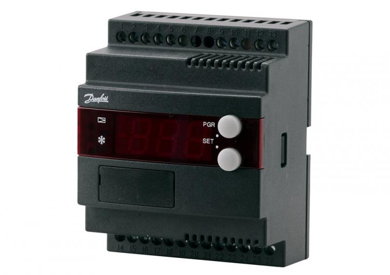 Контроллер управляет температурой в охлаждаемом объеме, получая сигнал от одного температурного датчика. Датчик помещается в поток воздуха после испарителя или непосредственно перед испарителем. Контроллер может управлять как естественной, так и электрической оттайкой. Новое включение после оттайки может быть выполнено по времени или температуре. Температура испарителя может быть измерена напрямую датчиком оттайки. Выходные реле включают и выключают требуемые функции, какие именно - определяется применением: