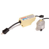 Контроль уровня воды, осуществляется датчиком поплавкового типа. Датчик помещен в компактный пластиковый контейнер, подключаемый к модулю насоса посредством управляющего кабеля. Модуль датчика может быть установлен в дренажной ванне или подсоединен к ее сливному патрубку. Установку модуля насоса возможно осуществить на высоте не более 2-х метров от уровня поддона. Помпа Siccom обладает водонепроницаемым корпусом. Так же от влаги защищены разъемы подключения.